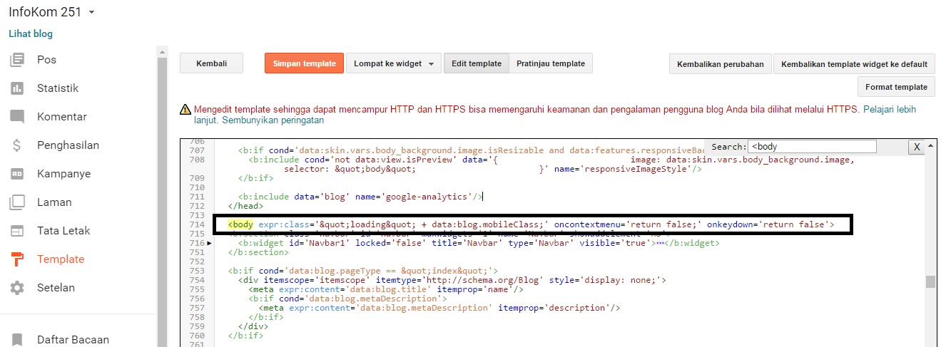 - Cari kode seperti ini. <body> atau <body .....ada text/code apapun disini...>,,